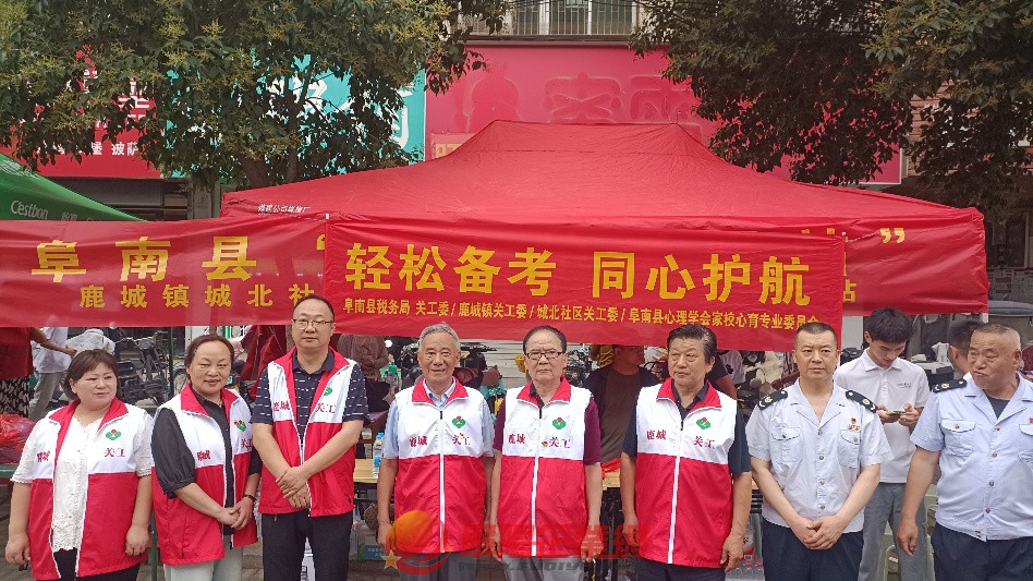 6月7日上午,安徽省阜陽市阜南縣稅務(wù)局、阜南縣鹿城鎮(zhèn)、城北社區(qū)、前進社區(qū)等關(guān)工委負責(zé)人和阜南縣心理學(xué)會家校心育專業(yè)委員會負責(zé)人攜手走進阜南縣第二中學(xué)高考點,聯(lián)合開展以“輕松備考 同心護航”為主題的莘莘學(xué)子助考活動。(田永濤) |